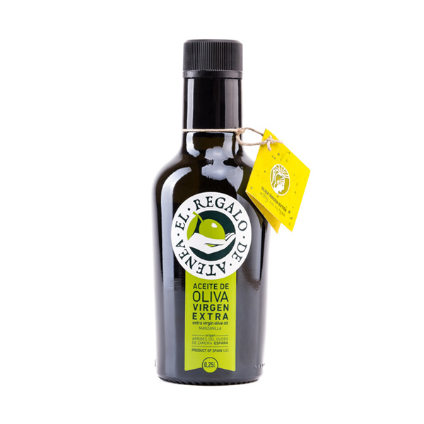Descubre el sabor auténtico de la tierra con el AOVE 250 ml “El Regalo de Atenea”, un aceite de oliva virgen extra artesanal producido en la región de Arribes del Duero, Zamora.