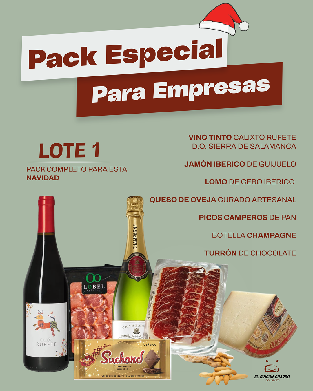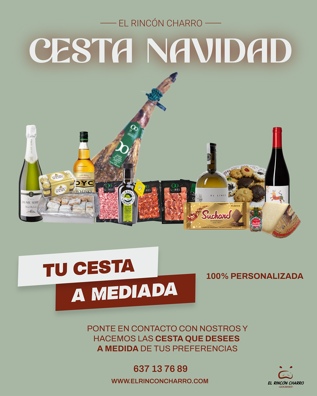 Cestas y lotes de Navidad para empresas personalizados con productos gourmet e ibéricos de Salamanca. Incluyen jamón ibérico, embutidos, quesos, vinos y dulces artesanos.